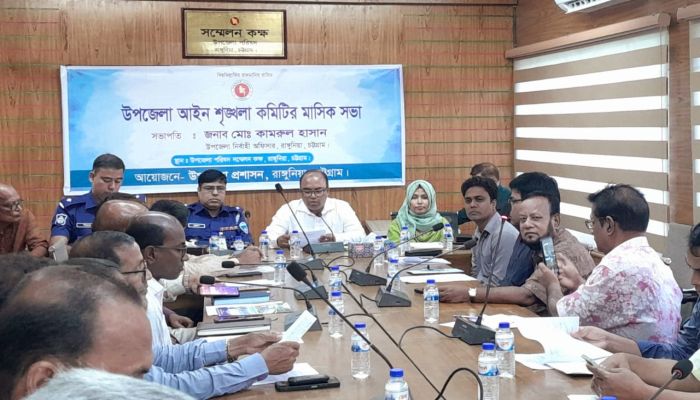 আজ ( ২২ এপ্রিল) সকালে উপজেলা পরিষদ সম্মেলন কক্ষে এই সভা অনুষ্ঠিত হয়। সভায় বক্তব্য দেন সহকারি কমিশনার (ভূমি) ও পৌর প্রশাসক মারজান হোসাইন, দক্ষিণ রাঙ্গুনিয়া থানার অফিসার ইনচার্জ (ওসি) এটিএম শিফাতুল মাজদার, রাঙ্গুনিয়া মডেল থানার পুলিশ পরিদর্শক (তদন্ত) সুজন হালদার, উপজেলা প্রকৌশলী মো. দিদারুল আলম, রাঙ্গুনিয়া প্রেস ক্লাব সভাপতি মোহাম্মদ ইলিয়াছ, সাধারণ সম্পাদক মো. নুরুল আবছার চৌধুরী, বীর মুক্তিযোদ্ধা খায়রুল বশর মুন্সি প্রমুখ। আইন শৃঙ্খলা সভায় বাজার মনিটরিং, কিশোর গ্যাং প্রতিরোধ, মাদক ,ইভটিজিং, বাল্যবিবাহ, ট্রাফিক ব্যবস্থা ও সড়কের পাশে অবৈধ স্থাপনা নির্মাণ নিয়ে আলোচনা হয়