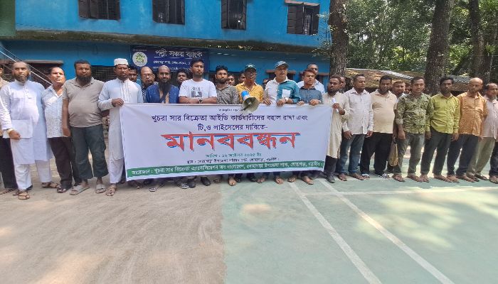 মানববন্ধনে বক্তব্য রাখেন খুচরা সার ব্যবসায়ী হীরক মোল্লা, আব্দুল আলিম, মাসুদ রানা, জাকির হোসেন, ইউনুস হোসেন পলাশসহ প্রমূখ। মানববন্ধনে বক্তরা বলেন, সম্প্রতি অন্তর্বর্তীকালীন সরকারের কৃষি উপদেষ্টা সংবাদ সম্মেলনে জানিয়েছেন যে, দেশব্যাপী লাইসেন্সধারী খুচরা সার বিক্রেতাদের সনদ স্থগিত করা হবে এবং খুচরা সার বিক্রেতা হিসেবে কাউকে আর পৃষ্ঠপোষকতা দেওয়া হবে না। এ ঘোষণায় সারাদেশের প্রায় ৪৪ হাজার খুচরা সার বিক্রেতা মারাত্মকভাবে হতাশ ও উৎকণ্ঠিত হয়ে পড়েছেন। তারা দীর্ঘ ৩০ বছরের বেশি সময় ধরে পৈত্রিকসূত্রে সার ব্যবসায় নিয়োজিত, কৃষক পর্যায়ে সার পৌঁছে দিচ্ছেন, ব্যাংক ঋণ গ্রহণ করে কাজ করছেন এবং কৃষকদের কাছ থেকে ৩০-৪০ লক্ষ টাকার মতো বাকিতে সার সরবরাহ করছেন। ফলে খুচরা বিক্রেতাদের জীবিকা বন্ধ হয়ে গেলে তাদের পরিবারসহ প্রায় ৫ কোটি কৃষক ক্ষতিগ্রস্ত হবেন।