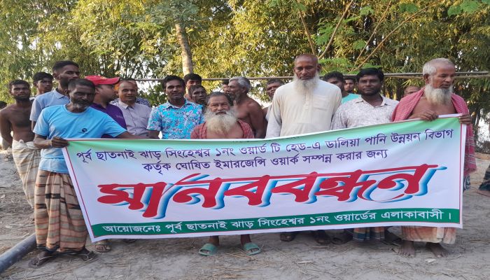 শনিবার (১৮ অক্টোবর) সন্ধ্যার আগ মুহূর্তে উপজেলার পূর্ব ছাতনাই ইউনিয়নের ঝাড় সিংহেশ্বর গ্রামে তিস্তা নদীর এক নম্বর ওয়ার্ড টি হেড-এ ডালিয়া পানি উন্নয়ন বোর্ডের ইমারজেন্সি ওয়ার্ক দ্রুত সম্পন্ন করার দাবিতে ঝুকিপূর্ণ টি-বাঁধে দ্বাড়িয়ে স্থানীয়রা ঘন্টাব্যাপি মানববন্ধন করেন।