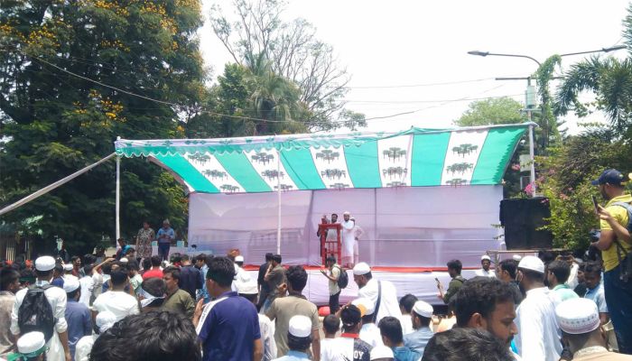 আওয়ামী লীগ নিষিদ্ধের দাবিতে জাতীয় নাগরিক পার্টি (এনসিপি) আজ শুক্রবার (৯ মে) জুমার নামাজের পর বড় জমায়েতের ডাক দিয়েছে। দুপুর ১২টার পর যমুনার সামনে থেকে সরে এসে আন্দোলনকারীরা এখন প্রধান উপদেষ্টার বাসভবন যমুনার পূর্ব পাশে ফোয়ারার সামনে তৈরি মঞ্চের সামনে অবস্থান নিয়েছেন।সমাবেশের জন্য একটি ট্রাক দিয়ে অস্থায়ী মঞ্চ তৈরি করা হয়েছে। বড় জমায়েতের লক্ষ্যে আন্দোলনকারীরা এই মঞ্চের সামনেই জড়ো হয়েছেন।