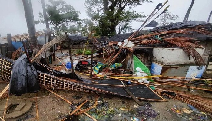 ঘূর্ণিঝড় মোখার প্রভাবে টেকনাফ উপজেলার সেন্ট মার্টিন দ্বীপে ঘণ্টায় ১৪৭ কিলোমিটার বেগে বাতাস বয়ে যাচ্ছে। ফলে টিনের চালাসহ দুর্বল স্থাপনাগুলো ভেঙে পড়ছে।
