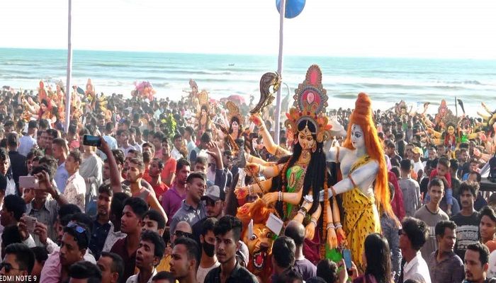 লাখো পর্যটক আর ভক্তদের উপস্থিতিতে বিশ্বের দীর্ঘতম সমুদ্র সৈকতে হয়ে গেল সবচেয়ে বড় প্রতিমা বিসর্জন। এর মাধ্যমে সমাপ্তি ঘটে দুর্গোৎসবের। ধরণীতে থাকা তার সন্তানদের আশীর্বাদ করে কৈলাসে ফিরে গেলেন দেবী দুর্গা। বিসর্জন উপলক্ষে সৈকতে নামে দেশি-বিদেশি পর্যটক আর ভক্তদের ঢল। এ উপলক্ষে নেয়া হয় বিশেষ নিরাপত্তা ব্যবস্থা।