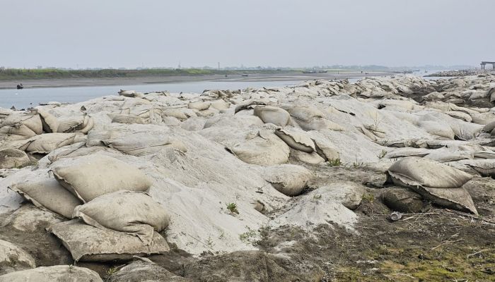শরীয়তপুরের ভেদরগঞ্জ উপজেলার সখিপুরের উত্তর তারাবুনিয়া ইউনিয়ন থেকে চরমোহন পর্যন্ত শীত মৌসুমে জেগে ওঠা জিওব্যাগ কাঁচি দিয়ে কেটে নিয়ে যেতে দেখা গেছে স্থানীয় একটি শ্রেণীকে।