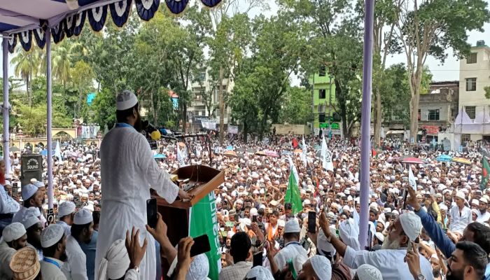 মামুনুল হক বলেন, আমাদের স্পষ্ট কথা, আমরা নতুন একটি বাংলাদেশ গড়তে চাই। যে বাংলাদেশে কোন বিদেশি রাষ্ট্রের প্রভুত্ব থাকবে না। যেই বাংলাদেশে কোন বৈষম্য থাকবে না। যেই বাংলাদেশের মানুষ তাদের ভোটাধিকার ফিরে পাবে। তিনি আরও বলেন, আমরা দেখেছি শেখ হাসিনার রাজনীতির কূটো কৌশল ছিল সংখ্যালঘুদের রাতের অন্ধকারে কাল নাগিনী হয়ে ছোবল মারতো আর দিনের আলোতে ওঝা হয়ে ঝাড়তে আসতো। এটা ছিল শেখ হাসিনার কৌশল। যখন তারা পালিয়ে গেল একটা দেশের মিডিয়া মায়া কান্না শুরু করল। বলতে লাগলো বাংলাদেশ নাকি সংখ্যালঘু নির্যাতন হয়। বাংলাদেশের আলেম সমাজ ইমাম সমাজ এদেশের ইসলাম প্রিয় জনতা এক মাস পর্যন্ত হিন্দুদের বৌদ্ধদের খ্রিস্টানদের ধর্মীয় উপাসনালয় পাহারা দিয়েছে। আমরা আগামী দিনেও এই দেশে সম্প্রীতির অনন্য দৃষ্টান্ত ধরে রাখব। এই দেশ মুসলমানের এই বাংলাদেশ হিন্দুদের এই বাংলাদেশ বৌদ্ধদের এই বাংলাদেশ খ্রিস্টানদের। ধর্ম-বর্ণ নির্বিশেষে সকলের বাংলাদেশ। এই দেশ এগিয়ে যাবে ইনশাল্লাহ। শেখ হাসিনা মোদি সরকারের অধীনে রয়েছে। কিন্তু সেখানে বসে যদি আমাদের এই বাংলাদেশের স্বাধীনতার বিরুদ্ধে যদি কোন ষড়যন্ত্র করে তবে ছাড় দেওয়া হবে না। ভবিষ্যতে ষড়যন্ত্রকারীরা যতই ষড়যন্ত্র করুক বাংলাদেশকে আর কখনোই পিছনে নিতে পারবে না।