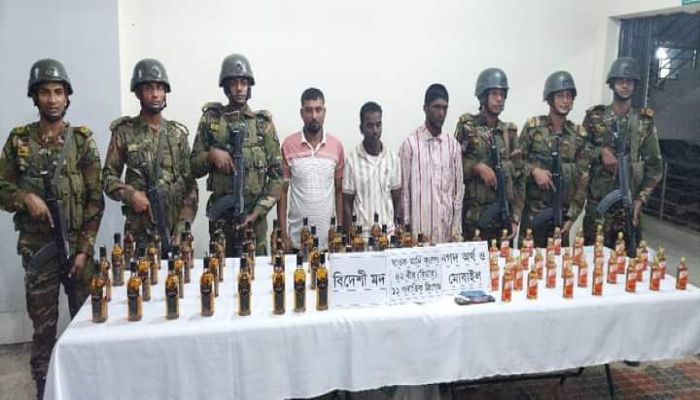 সেনাবাহিনী মদ্যপানরত অবস্থায় তাদেরকে আটক করে। এসময় বাড়ি তল্লাসী করে ৪৪ বোতল এসি ব্ল্যাক, অফিসার চয়েজ ৪১ বোতল সহ মোট ৮১ বোতল ভারতীয় মদ এবং নগদ ১ হাজার ১৪০ টাকা ও দুইটি মোবাইল ফোন জব্দ করা হয়।