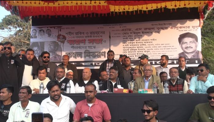 জেলা ছাত্রদলের সভাপতি মো. কামরুল ইসলামের সভাপতিত্বে বক্তব্যে রাখেন- জেলা বিএনপির নেতা মো. শহিদুল ইসলাম বাচ্চু, রহিম নেওয়াজ, ফরহাদ আলী দেওয়ান শাহীন, সাইফুল ইসলাম আফতাব,যুবদল সভাপতি এ হাই তালুকদার ডালিম প্রমুখ। রে ১ হাজার শীতার্তদের মাঝে কম্বল বিতরণ করা হয়।