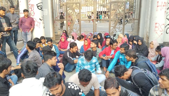 আজ (১৯ জানুয়ারি) বিকেল ৪টায় দ্বিতীয় দিনের মতো বিশ্ববিদ্যালয়ের প্রধান ফটকে তালা ঝুলিয়ে দেন বিভাগের শিক্ষার্থীরা।