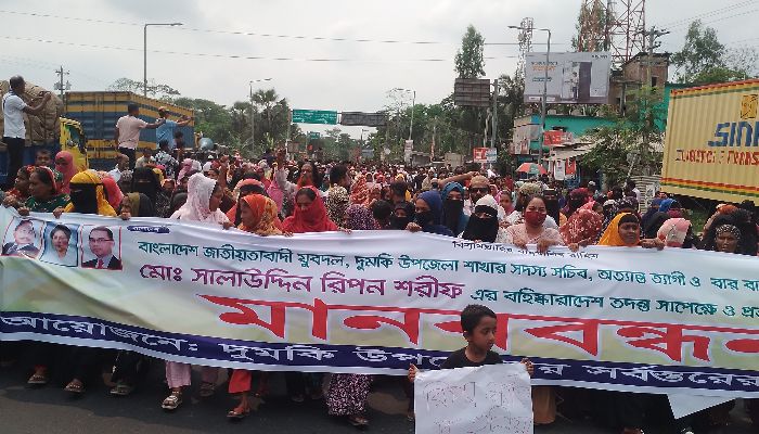 পটুয়াখালীর দুমকি উপজেলা যুবদলের সদস্য সচিব মোঃ সালাউদ্দিন রিপন শরীফের বহিষ্কারাদেশ প্রত্যাহার এবং তদন্ত সাপেক্ষে আদেশ পুর্নবিবেচনার দাবিতে এলাকাবাসীর ব্যনারে মানববন্ধন ও বিক্ষোভ অনুষ্ঠিত হয়েছে।