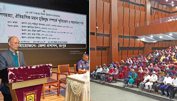 জাতীয় গণহত্যা দিবস উপলক্ষে গতকাল মঙ্গলবার (২৫ মার্চ) সকালে রংপুর জেলা শিল্পকলা একাডেমি অডিটোরিয়ামে জেলা প্রশাসন আয়োজিত ‘গণহত্যা, ঐতিহাসিক মহান মুক্তিযুদ্ধ সম্পর্কে স্মৃতিচারণ’ শীর্ষক আলোচনা সভায় প্রধান অতিথির বক্তৃতায় তিনি এ আহ্বান জানান। অনুষ্ঠানে সভাপতিত্ব করেন রংপুরের জেলা প্রশাসক মোহাম্মদ রবিউল ফয়সাল।