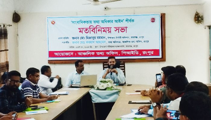 এতে বক্তব্য রাখেন সহকারী তথ্য অফিসার আয়শা সিদ্দিকা, তথ্য সহকারী অর্জুন কুমার রায়, আলোকচিত্রি ওয়াদুদ হাসান বাঁধন, আলতাব হোসেন দুলাল (দৈনিক প্রথম আলো), রুহুল আমিন সরকার (দৈনিক সংবাদ), বাদশা ওসমানী (আমার দেশ), আশরাফুল আলম আপন (আজকের পত্রিকা), মেজবাহুল কবির সবুজ (দৈনিক যায়যায় দিন), শ্যামল লোহানী (দৈনিক ভোরের দর্পণ), মোস্তাফিজুর রহমান (দৈনিক দিনকাল),মাহবুবুর রহমান বিপ্লব (দৈনিক আমাদের সময়), আফতাবুজ্জামান তাজ (দৈনিক প্রথম খবর), (দৈনিক যুগের আলো)আকাশ রহমান, ফেরদৌস আলী প্রমুখ। বক্তারা বিভিন্ন দপ্তরের দুর্নীতি প্রতিরোধে ও স্বচ্ছতা নিশ্চিতে তথ্য অধিকার আইন সম্পর্কে জনসচেতনতা বাড়ানোর উপর গুরুত্বারোপ করেন।