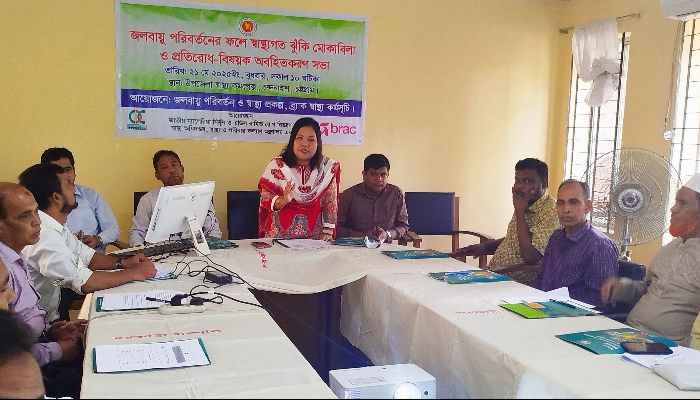 জলবায়ু পরিবর্তন ও স্বাস্থ্য প্রকল্প, ব্রাক স্বাস্থ্য’র উদ্যোগে জলবায়ু পরিবর্তনের ফলে স্বাস্থ্যগত ঝুঁকি মোকাবেলা ও প্রতিরোধ-বিষয়ক অবহিতকরণ সভা উপজেলা স্বাস্থ্য কমপ্লেক্স মিলনায়তনে অনুষ্ঠিত হয়।