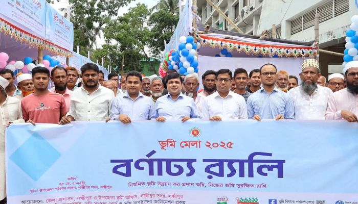 “নিয়মিত ভূমি উন্নয়ন কর প্রদান করি, নিজের জমি সুরক্ষিত রাখি” এমন স্লোগানকে সামনে নিয়ে লক্ষ্মীপুরে ভূমি মেলার উদ্বোধন করা হয়েছে। লক্ষ্মীপুর জেলা প্রশাসন ও উপজেলা ভূমি অফিসের আয়োজনে রোববার (২৫ মে) সদর উপজেলা পরিষদ প্রাঙ্গণে তিনদিনব্যাপী এ মেলার আয়োজন করা হয়। ফিতা কেটে, বেলুন উড়িয়ে ও বর্ণাঢ্য র্যালির মাধ্যমে প্রধান অতিথি জেলা প্রশাসক রাজিব কুমার সরকার ভূমি মেলার উদ্বোধন করেন।
