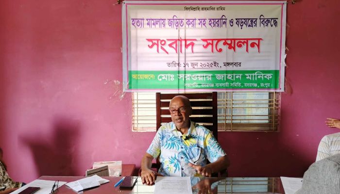 রংপুরের বদরগঞ্জে ব্যবসায়ী সমাজের নেতৃত্বকে খর্ব করার অপচেষ্টায় হত্যা মামলার মত একটি সাজানো ফঁাদ তৈরি করা হয়েছে- এমন দাবী করেছেন ব্যবসায়ী সমিতির সভাপতি সরওয়ার জাহান মানিক। মঙ্গলবার(১৭জুন) সকালে স্থানীয় শহীদ মিনার চত্বরস্থ তার ব্যবসায়িক কার্যালয়ে এক সংবাদ সম্মেলনে তিনি এ দাবী করেন।