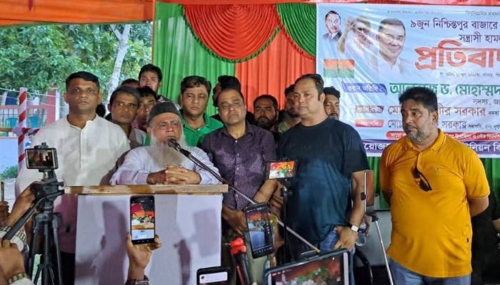 চাঁদপুরের মতলব উত্তর উপজেলার নিশ্চিন্তপুর বাজারে গত ৯জুন বিএনপির শান্তিপূর্ণ মিছিলে সন্ত্রাসী হামলার প্রতিবাদে এক প্রতিবাদ সভা অনুষ্ঠিত হয়েছে।