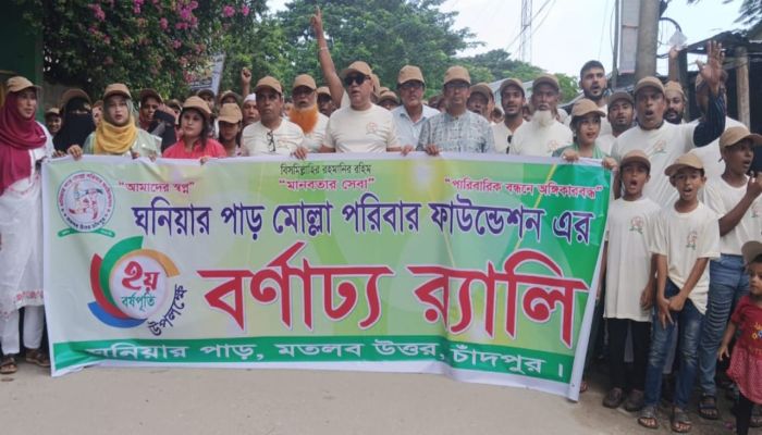 চাঁদপুর মতলব উত্তরে ঐতিহ্যবাহী ঘনিয়ার পাড় মোল্লা পরিবার ফাউন্ডেশন ২য় বর্ষ পূর্তি উপলক্ষ্যে বর্ণাঢ্য র্যালি ও আলোচনা সভা অনুষ্ঠিত হয়েছে।