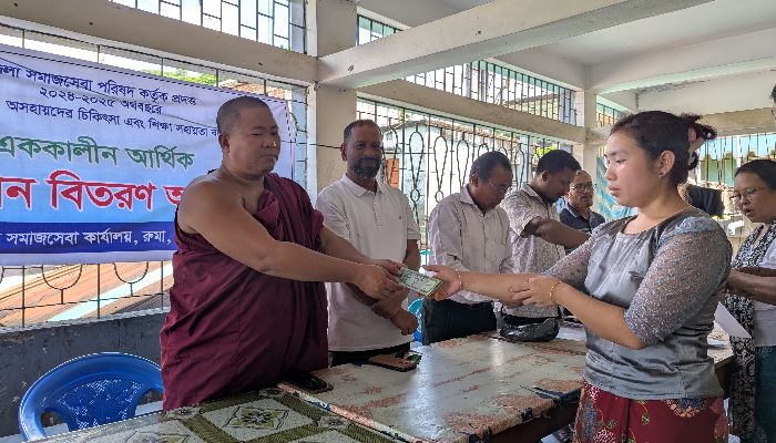 তিনি বলেন, বান্দরবান পার্বত্য জেলা পরিষদের চেয়ারম্যান মহোদয় মানবিক সেবায় অত্যন্ত আন্তরিক। যথাযথভাবে আবেদন করলে কোনো অসহায়, গরিব বা দরিদ্র মানুষের আবেদন বিফলে যাবে না। জেলা পরিষদ সবসময় মানবকল্যাণে পাশে থাকবে। রুমা সদর ইউনিয়ন পরিষদের ভারপ্রাপ্ত চেয়ারম্যান অংসিনু মার্মার সভাপতিত্বে বিশেষ অতিথি হিসেবে বক্তব্য দেন রুমা প্রেসক্লাবের সভাপতি শৈহ্লাচিং মারমা, রুমা অগ্রবংশ অনাথালয়ের পরিচালক উপা. নাইন্দিয়া ভিক্ষু এবং উপজেলা সমাজসেবা কার্যালয়ের মাঠ কর্মকর্তা খেমাজন ত্রিপুরা।