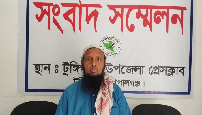 গোপালগঞ্জের টুঙ্গিপাড়ায় নিজের ক্রয়কৃত জমি দখলমুক্ত ও ফেরতের দাবিতে সংবাদ সম্মেলন করেছেন এক মসজিদের ইমাম। টুঙ্গিপাড়া উপজেলা প্রেসক্লাবে সোমবার (১৩ অক্টোবর ২০২৫) বেলা ১১টায় এ সংবাদ সম্মেলনের আয়োজন করা হয়। উপজেলার দাউদকান্দি পশ্চিমপাড়ার বাসিন্দা ও শ্রীরামকান্দি উত্তরপাড়ার শেখ জহির উদ্দিন জামে মসজিদের ইমাম মো. আজিজুল হক মোল্লা এ সংবাদ সম্মেলন করেন।