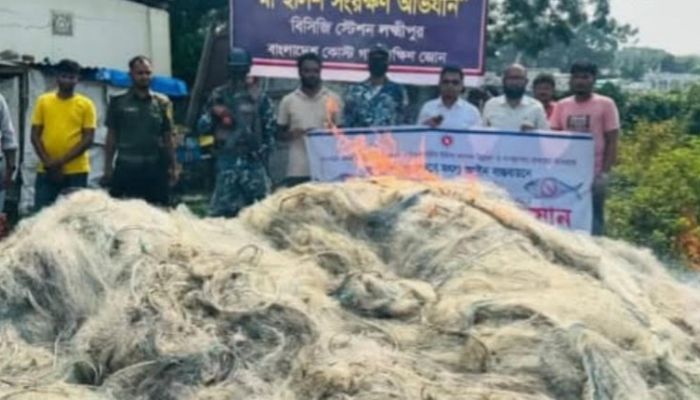ইলিশের প্রধান প্রজনন মৌসুমে সরকার ঘোষিত ২২ দিনের নিষেধাজ্ঞা উপেক্ষা করে লক্ষ্মীপুরের মেঘনা নদীতে ইলিশ শিকার করছে কিছু জেলে। সদর উপজেলার মেঘনা নদী এলাকায় গতকাল মঙ্গলবার (১৪ অক্টোবর) দুপুরে অভিযান চালিয়ে দেড় লাখ মিটার অবৈধ কারেন্ট জাল ও ২০০ কেজি জাটকা ইলিশ জব্দ করেছে উপজেলা প্রশাসন, মৎস্য অধিদপ্তর ও কোস্টগার্ডের যৌথ টিম। তবে অভিযানের সময় কোনো জেলেকে আটক করা সম্ভব হয়নি বলে জানিয়েছে প্রশাসন।