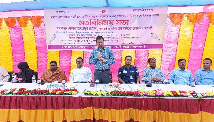 সভায় প্রধান অতিথির বক্তব্যে ঝালকাঠির জেলা প্রশাসক আশরাফুর রহমান জেলেদের উদ্দেশ্যে বলেন, দেশের স্বার্থে আগামী ৭ দিন কেউ মাছ ধরতে যাবে না। এমন শখ ভালো নয় যে শখে জেল খাটতে হয়। আপনার পরিবার ও সন্তান নিশ্চয়ই চান না আপনি জেলে যান। দেশের স্বার্থে ইলিশ রক্ষায় আমরা এবার বেশ সিরিয়াস। পৃথিবীর ৮০ শতাংশ ইলিশ উৎপাদন হয় আমাদের দেশে। এর সম্পদ আমাদের গর্ব, তাই আমাদের দায়িত্ব এটা সংরক্ষণ ও উৎপাদন বাড়ানো। আগামী বাকি দিনগুলোতে কেউ মাছ ধরতে যাবে না, মা ইলিশ মারবেন না। এতে আপনাদেরই লাভ হবে, তাতে দেশও উপকৃত হবে।