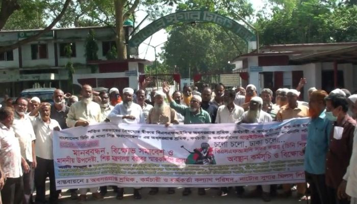 এসময় বক্তারা বলেন, নাটোরের ৪০৭ জন শ্রমিকের বকেয়া প্রায় ৩৩ কোটি টাকা। দীর্ঘদিন ধরে বকেয়া অর্থ হাতে না পাওয়ায় অবসরপ্রাপ্ত শ্রমিক, কর্মচারী ও কর্মকর্তারা মানবেতর জীবনযাপন করছেন। এ অবস্থায় দ্রুত বকেয়া পাওনাদি পরিশোধের পাশাপাশি সামাজিক নিরাপত্তা কর্মসূচির আওতায় দুটি উৎসব ভাতা, বৈশাখী ভাতা ও চিকিৎসা ভাতা প্রদান করতে হবে।
