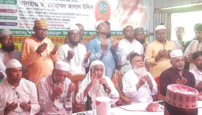 চাঁদপুরের মতলব উত্তরে দেশনেত্রী বেগম খালেদা জিয়ার সুস্থ্যতা ও দীর্ঘায়ু কামনায় ইমাম ও ওলামাদের সমন্বয়ে খতমে কোরআন, খতমে শিফা বিশেষ দোয়া মিলাদ মাহফিল অনুষ্ঠানে প্রধান অতিথির বক্তব্যে কেন্দ্রীয় বিএনপি‘র নির্বাহী কমিটির সদস্য ও চাঁদপুর- ২ আসন থেকে বিএনপি‘র মনোনয়ন প্রত্যাশী আলহাজ্ব ড. মোহাম্মদ জালাল উদ্দিন এসব কথা বলেন।