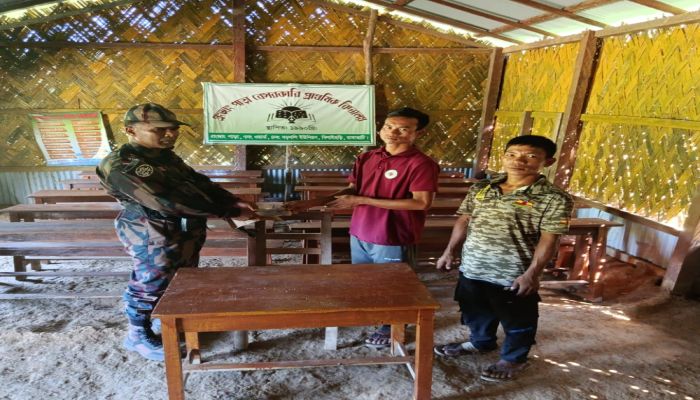 সোমবার (২০ অক্টোবর ) রুমা ব্যাটালিয়ন (৯ বিজিবি)-এর অধিনায়ক কর্নেল এ. বি. এম. শাহ্ রেজা, এর নির্দেশনায় অধীনস্থ রাইক্ষ্যংপুকুরপাড়া লগ বেস ক্যাম্পের কমান্ডার বিদ্যালয়টিতে ১টি চেয়ার, ১টি টেবিল এবং ২০টি বেঞ্চ হস্তান্তর করেন।