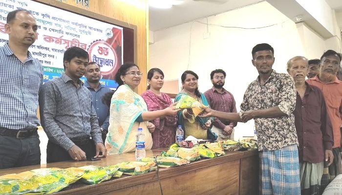 মাদারীপুরে চলতি রবি শস্য মৌসুমে তেলবীজ উৎপাদন বৃদ্ধিতে সোয়া ৪ হাজার কৃষকের মাঝে বিনামূল্যে সার ও সরিষা বীজ বিতরণ করা হয়েছে। বুধবার বিকেল ৪ টার দিকে সদর উপজেলা মিলনায়তনে কর্মসূচীর উদ্বোধন করা হয়েছে।