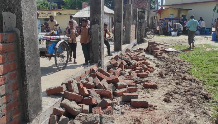 বিদ্যালয়ের ভারপ্রাপ্ত প্রধান শিক্ষক সাইফুল ইসলাম বকুল জানান, বিদ্যালয়ের পক্ষ থেকে তিন সদস্যের একটি কমিটি কাজ তদারকি করছে। কাজ শেষ হওয়ার আগেই স্থানীয়রা এসে প্রাচীর ভেঙে ফেলেছে। শুনেছি, তারা কাজের মান নিয়ে আপত্তি তুলেছেন।