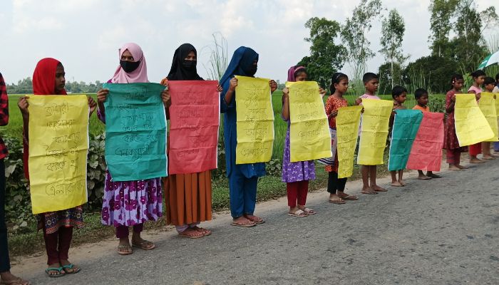মানববন্ধন স্থানীয় বাসিন্দা খোকন মন্ডল বলেন, চাঁপুল শাহ’র আম বাগানে তার ভাতিজা তুহিন শাহ প্রতিদিন পুরাতন ব্যাটারি এনে আগুনে গলিয়ে ব্যাটারির সীসা ও রাসায়নিক বর্জ্যে বাগানের চারপাশে ছড়িয়ে ছিটিয়ে রাখায়। এলাকাবাসীর গরু ছাগল ওই ঘাস খেয়ে অসুস্থ হয়ে প্রায় দেড় শতাধিক গরু মারা গিয়েছে। অবিলম্বে অবৈধ পুরাতন ব্যাটারির কারখানা বন্ধ, দোষীদের বিরুদ্ধে শাস্তিমূলক ব্যবস্থা এবং ক্ষতিগ্রস্তদের চিকিৎসা সহায়তার দাবি জানানো হয়।