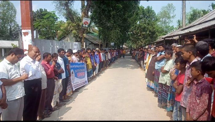 রোববার দুপুরে সদর উপজেলার ভোগডাঙ্গা ইউনিয়নের লক্ষ্মীকান্ত আর্দশ উচ্চ বিদ্যালয়ের সামনে এ মানববন্ধন ও বিক্ষোভ করে এলাকাবাসী। এতে অংশ নেয় নিহতের পরিবারসহ শত শত নারী পুরুষ।
