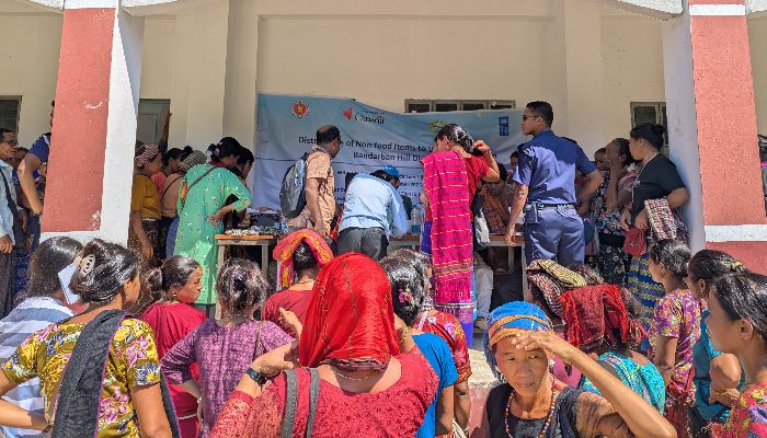 বান্দরবানের রুমা উপজেলায় ঝুঁকিপূর্ণ ও অসহায় পরিবারের মাঝে নন-ফুড আইটেম বিতরণ কার্যক্রম অনুষ্ঠিত হয়েছে। সোমবার (২৭ অক্টোবর) সকাল ১০টায় রুমা সাঙ্গু কলেজ প্রাঙ্গণে এ বিতরণ অনুষ্ঠানের আয়োজন করা হয়। “বান্দরবান হিল ডিস্ট্রিক্ট কাউন্সিল” এর উদ্যোগে এবং জাতিসংঘ উন্নয়ন কর্মসূচি (টঘউচ) ও কানাডা সরকারের সহযোগিতায় এ কার্যক্রম পরিচালিত হয়।