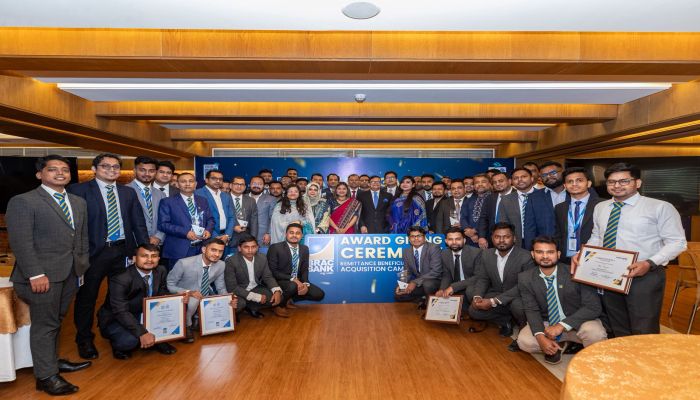 প্রবাসী পরিবারকে ব্যাংকিং সেবা প্রদানে অসাধারণ নৈপুণ্য প্রদর্শনকারী কর্মীদের সম্মাননা দিয়েছে ব্র্যাক ব্যাংক। দেশে রেমিটেন্স প্রবাহ বৃদ্ধিতে ভূমিকা রাখায় তাঁদের এই সম্মাননা দেওয়া হয়।