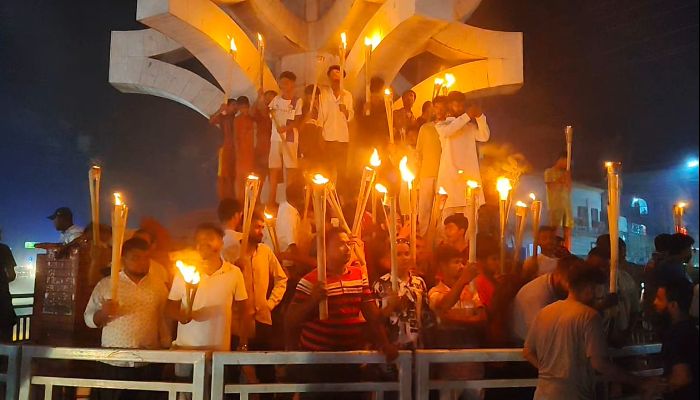 জেলার দাবিতে ট্রেনে পাথর নিক্ষেপের ঘটনায় মামলার প্রতিবাদে মশাল মিছিল করেছে ছাত্র ও যুবসমাজের প্রতিনিধিরা। গতকাল মঙ্গলবার (২৮ অক্টোবর) রাত ১০টায় ঢাকা-সিলেট মহাসড়কের দূর্জয়মোড় বাসস্ট্যান্ড এলাকায় এই মশাল মিছিল অনুষ্ঠিত হয়। মিছিলটি দূর্জয়মোড় গণঅধিকার পরিষদ কার্যালয়ের সামনে থেকে শুরু হয়ে মহাসড়কের কমলপুর নিউটাউন এলাকা ঘুরে আবারও দুর্জয় পাদদেশ এসে শেষ হয়।