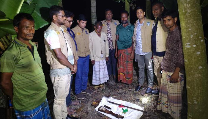 জেলা গোয়েন্দা পুলিশ সূত্রে জানা যায়, গত ২৮ অক্টোবর (মঙ্গলবার) রাত সোয়া ৯টার দিকে গোপন সংবাদের ভিত্তিতে মিঠাপুকুর উপজেলার কাফ্রিখাল এলাকায় অভিযান পরিচালনা করে জেলা গোয়েন্দা পুলিশ। এসময় ওই এলাকার রবিউল ইসলামের সুপারি ও নারিকেল বাগানে একটি সাদা প্লাস্টিকের বস্তার ভিতরে কাগজে মোড়ানো অবস্থায় ১টি একনলা বন্দুক ও ৫ রাউন্ড গুলি পরিত্যক্ত অবস্থায় উদ্ধার করা হয়।