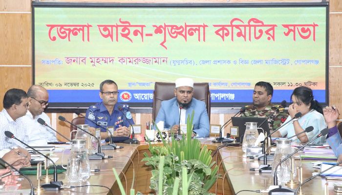 গোপালগঞ্জে জেলা আইন-শৃঙ্খলা কমিটির মাসিক সভা নভেম্বর অনুষ্ঠিত হয়েছে। গোপালগঞ্জ জেলা প্রশাসনের আয়োজনে রোববার (৯ নভেম্বর) বেলা সাড়ে ১১ টায় জেলা প্রশাসকের সম্মেলন কক্ষ স্বচ্ছতা’য় আয়োজিত এ সভায় সভাপতিত্ব করেন জেলা প্রশাসক ও বিজ্ঞ জেলা ম্যাজিস্ট্রেট মুহম্মদ কামরুজ্জামান (যুগ্মসচিব)।