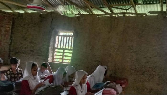 তবে বর্তমানে বিদ্যালয়ের অবকাঠামো মারাত্মকভাবে নাজুক। শ্রেণিকক্ষের মাটির দেয়ালে ফাঁকফোকর দিয়ে বৃষ্টির পানি ও বাতাস ঢুকে পড়ে। কোথাও কোথাও ফ্যান ঝুলে আছে বিপজ্জনকভাবে। তবুও বিকল্প না থাকায় শিক্ষার্থীরা ঝুঁকি নিয়ে ক্লাস করছে।