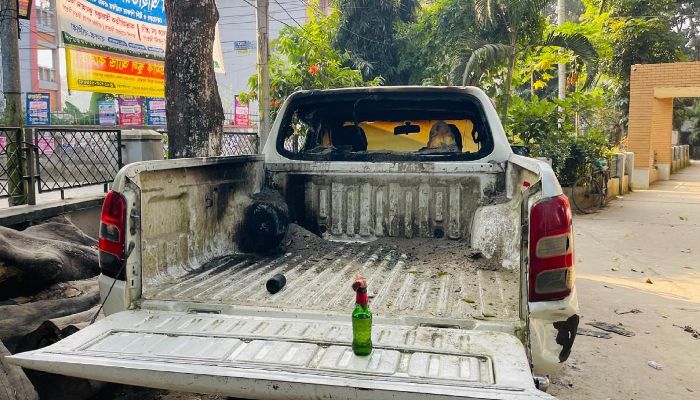 পুলিশ জানায়, ভোর সাড়ে ৪টার দিকে গণপূর্ত বিভাগের অফিস ভবনের দেওয়াল ও একটি পিক-আপভানে অন্তত ১০টি পেট্রোল বোমা নিক্ষেপ করে র্দুবৃত্তরা। এতে পিক-আপভ্যানে আগুন ধরে যায়। অফিসের গার্ড টের পেয়ে আশপাশের লোকজন নিয়ে আগুন নিয়ন্ত্রণে আনে।