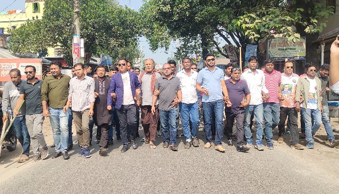 বৃহস্পতিবার (১৩নভেম্বর) সকালে উপজেলা সেচ্ছাসেবক দলের আহ্বায়ক রাশেদুল হক শামীম, ছাত্রদলের আহ্বায়ক মাসুদুজ্জামান রুবেল ও যুবদলের আহ্বায়ক মোঃ বেনজির আহমেদ বাচ্চু'র যৌথ নেতৃত্বে এই বিক্ষোভ মিছিল অনুষ্ঠিত হয়।