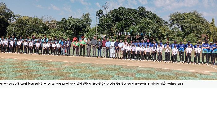 মৌলভীবাজারের কমলগঞ্জে বাংলাদেশের প্রথমবারের মতো ১৫টি জেলা নিয়ে রেমিট্যান্স যোদ্ধা আন্তঃজেলা কাপ টেপ টেনিস ক্রিকেট টূর্নামেন্টের শুভ উদ্বোধন হয়েছে। বুধবার (১৯ নভেম্বর) দুপুরে উপজেলার শমশেরনগর চা বাগান মাঠে ক্রিকেট পরিবার, শমশেরনগর এর আয়োজনে এই টূর্নামেন্টের শুভ সুচনা হয়।