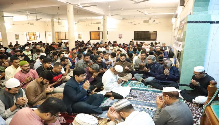 দোয়া মাহফিল পরিচালনা করেন বিশ্ববিদ্যালয়ের কেন্দ্রীয় জামে মসজিদের সিনিয়র পেশ ইমাম ও খতিব মো. ছালাহ্ উদ্দিন।