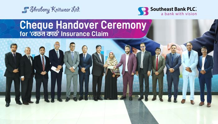 সাউথইস্ট ব্যাংক পিএলসি-এর "বেতন কার্ড" কর্মসূচির আওতায় গ্রুপ ইন্স্যুরেন্স সুবিধার অংশ হিসেবে শ্রাবণী নিটওয়্যার লিমিটেডের এক মৃত কর্মচারীর পরিবারের কাছে একটি ইন্স্যুরেন্স ক্লেইম চেক হস্তান্তর করা হয়েছে। উক্ত ইন্স্যুরেন্স সুবিধাটি ন্যাশনাল লাইফ ইন্স্যুরেন্স কোম্পানি লিমিটেডের সহযোগিতায় প্রদান করা হয়, যা কর্মীদের কল্যাণ ও আর্থিক নিরাপত্তা নিশ্চিত করতে সাউথইস্ট ব্যাংকের অঙ্গীকারকে প্রতিফলিত করে।