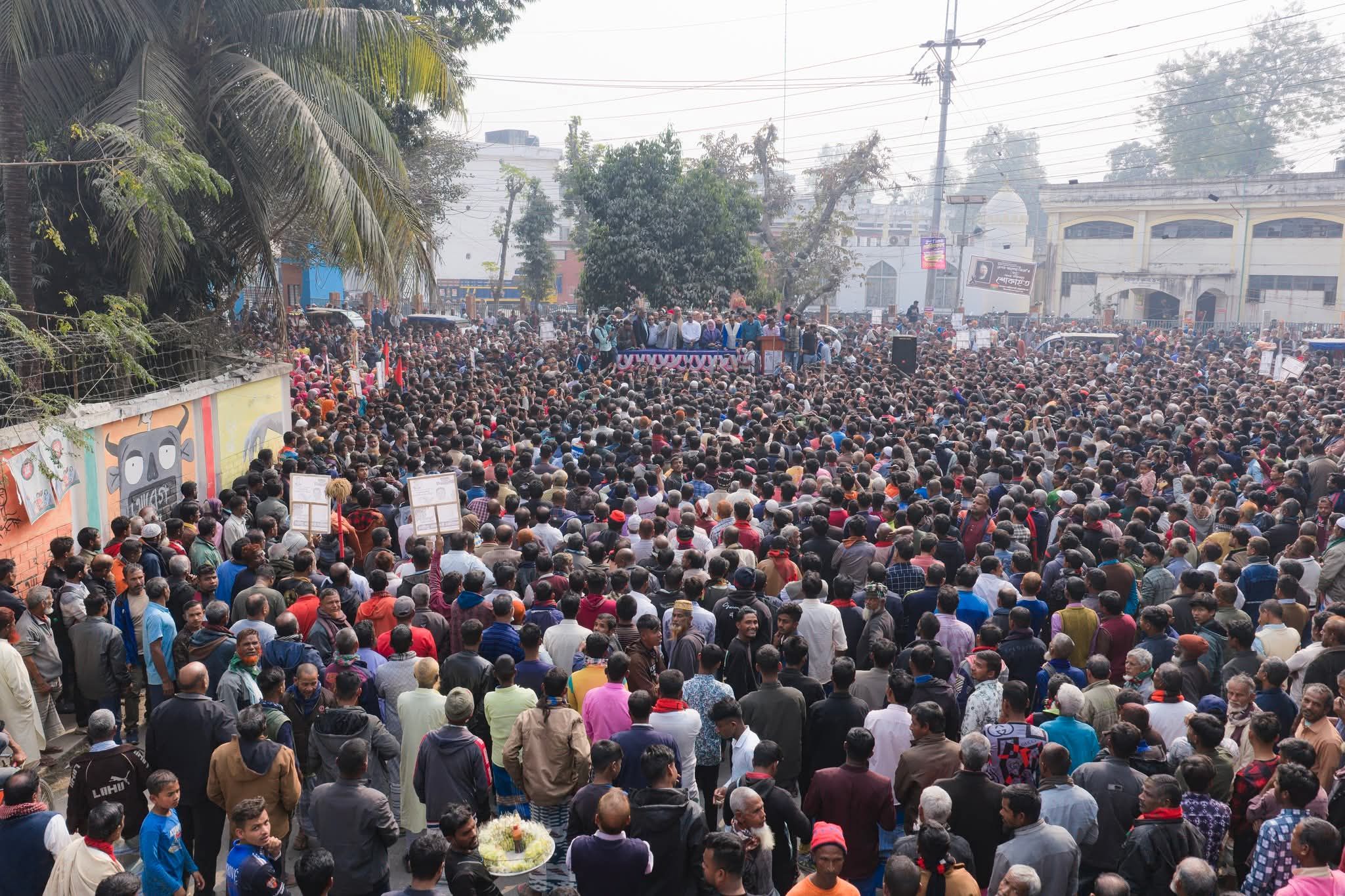 বৃহস্পতিবার (২২ জানুয়ারি) দুপুরে জেলা শহরের ডিসির মোড় থেকে একটি বিশাল মিছিল বের করা হয়। মিছিলটি শহরের প্রধান সড়ক প্রদক্ষিণ করে রুবেল চত্বরে গিয়ে শেষ হয়।