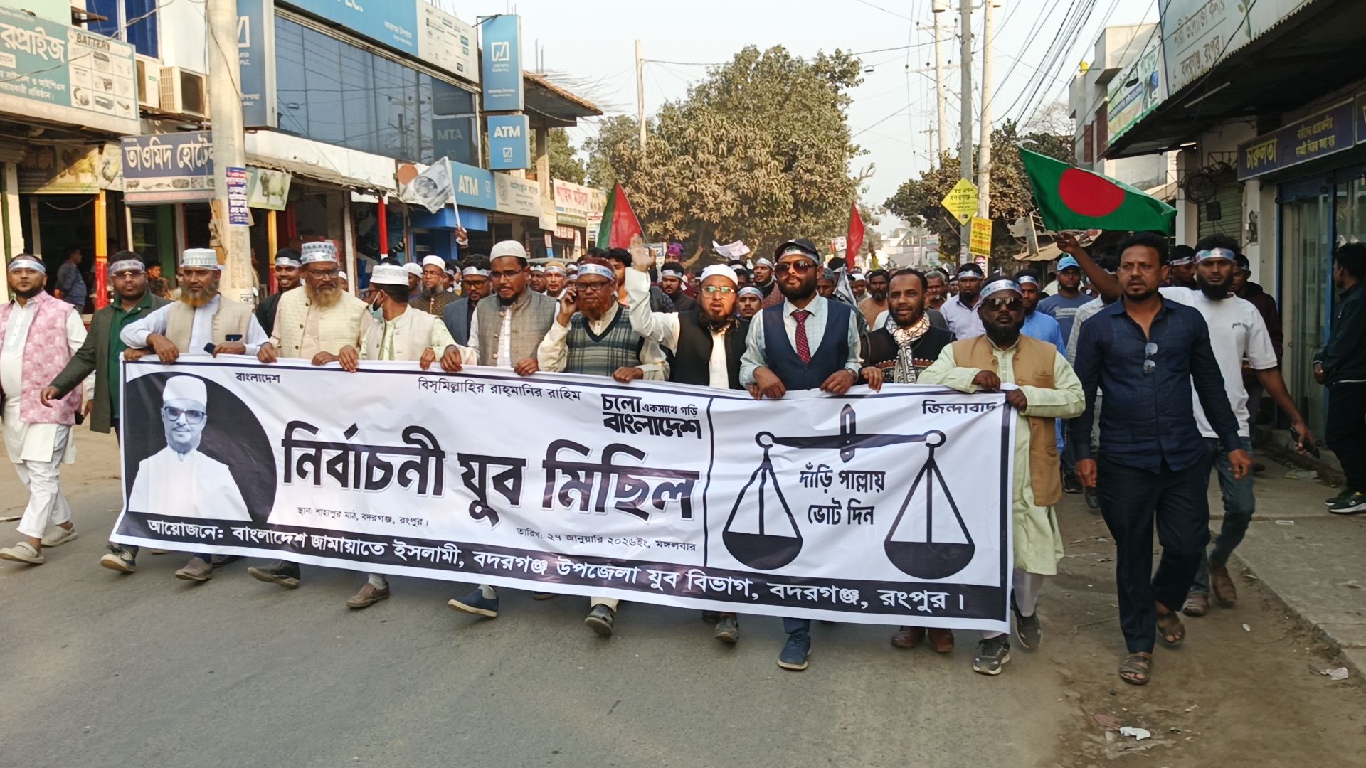 বাংলাদেশ জামায়াতে ইসলামীর কেন্দ্রীয় নেতা এটিএম আজহারুল ইসলামের দাঁড়িপাল্লা মার্কার সমর্থনে মঙ্গলবার (২৭ জানুয়ারি) বিকাল তিনটায় রংপুরের বদরগঞ্জ সাহাপুর মাঠে যুব র্যালি অনুষ্ঠিত হয়েছে।র্যালিটি সাহাপুর মাঠ থেকে শুরু হয়ে গুরুত্বপূর্ণ সড়ক প্রদক্ষিণ করে উপজেলা পরিষদের সড়কে শেষ করে। এতে জামায়াতে ইসলামী ও বদরগঞ্জ উপজেলার সহযোগী সংগঠনের যুবকর্মীরা অংশ নেন। তারা দলীয় পতাকা ও ব্যানার হাতে বিভিন্ন স্লোগান দেন। যুব র্যালি শেষে এটিএম আজহারুল ইসলাম বলেন, বাংলাদেশে সৎ ও যোগ্য নেতৃত্বের অভাবে দুর্নীতিগ্রস্ত নেতৃত্ব দিয়ে দুর্নীতিমুক্ত দেশ গড়া যায়নি, যাবে না।