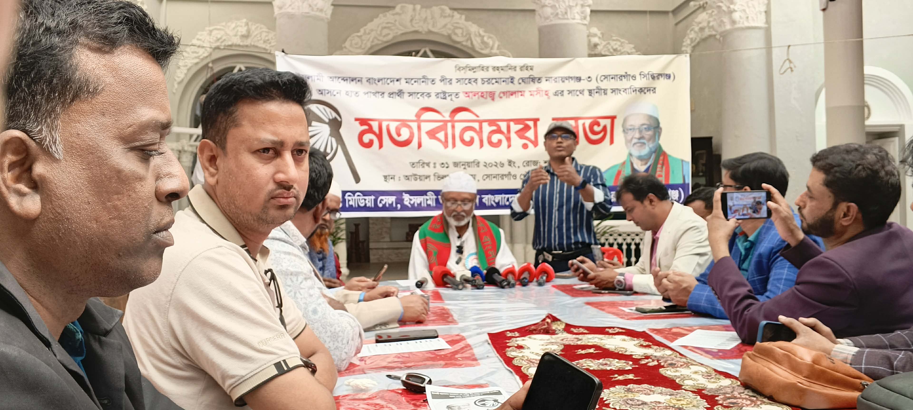 আসন্ন ত্রয়োদশ জাতীয় সংসদ নির্বাচনে নারায়ণগঞ্জ-৩ (সোনারগাঁ ও সিদ্ধিরগঞ্জ) আসনে ইসলামী আন্দোলন বাংলাদেশের মনোনীত হাতপাখা মার্কার পদপ্রার্থী ও সাবেক সৌদি আরবে বাংলাদেশের রাষ্ট্রদূত গোলাম মসীহ স্থানীয় সাংবাদিকদের সঙ্গে এক মতবিনিময় সভা করেছেন।
