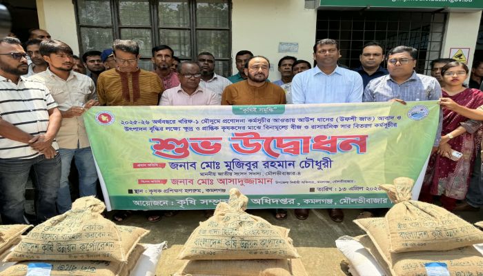 মৌলভীবাজারের কমলগঞ্জ উপজেলায় কৃষি উৎপাদন বৃদ্ধি ও পতিত জমি চাষের আওতায় আনতে ক্ষুদ্র ও প্রান্তিক কৃষকদের মাঝে বিনামূল্যে বীজ ও সার বিতরণ করা হয়েছে।
