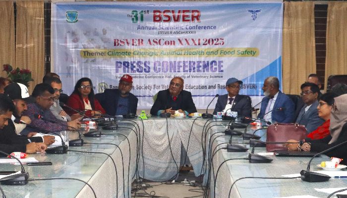 বিএসভিইআরের ৩১তম বার্ষিক সম্মেলন উপলক্ষে আয়োজিত সংবাদ সম্মেলনে লিখিত বক্তব্য পাঠকালে এসব কথা বলেন বিএসভিইআরের কার্যনির্বাহী কমিটির সাধারণ সম্পাদক অধ্যাপক ড. সুকুমার সাহা। শুক্রবার (৩১ জানুয়ারি) সকাল ১০টার দিকে বাকৃবির ভেটেরিনারি অনুষদের মেডিসিন কনফারেন্স রুমে ওই সংবাদ সম্মেলনের আয়োজন করা হয়।