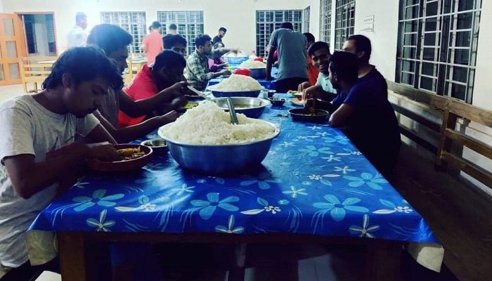 সেহরির সময় হলে খাবার খাচ্ছেন শিক্ষার্থীরা। ছবি: সংবাদ সারাবেলা