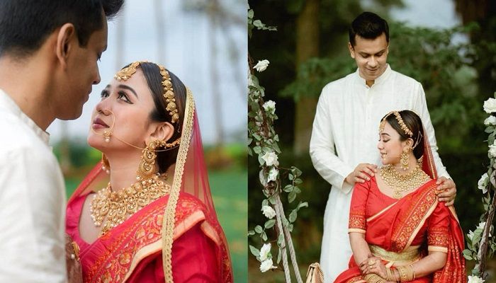 ওই ছবিতে দেখা যায়, লাল রঙের একটি শাড়ি পরেছেন চমক। সঙ্গে সোনালি রঙের কুন্দনের গয়না ও হালকা মেকআপেই বউ সেজেছেন তিনি। অন্যদিকে অভিনেত্রীর স্বামী পরেছেন সাদা রঙের শেরওয়ানি।
