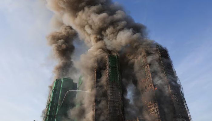 ভবনগুলোর কিছু অংশে বাঁশের মাচা (স্ক্যাফোল্ডিং) লাগানো ছিল। রয়টার্স জানিয়েছে, রাস্তাজুড়ে অসংখ্য ফায়ার ইঞ্জিন ও অ্যাম্বুল্যান্স সারিবদ্ধভাবে দাঁড়িয়ে ছিল। ফায়ার সার্ভিস ডিপার্টমেন্ট রয়টার্সকে জানিয়েছে, এখনো কতজন ভেতরে আটকে থাকতে পারে, তার সঠিক সংখ্যা তারা জানে না।