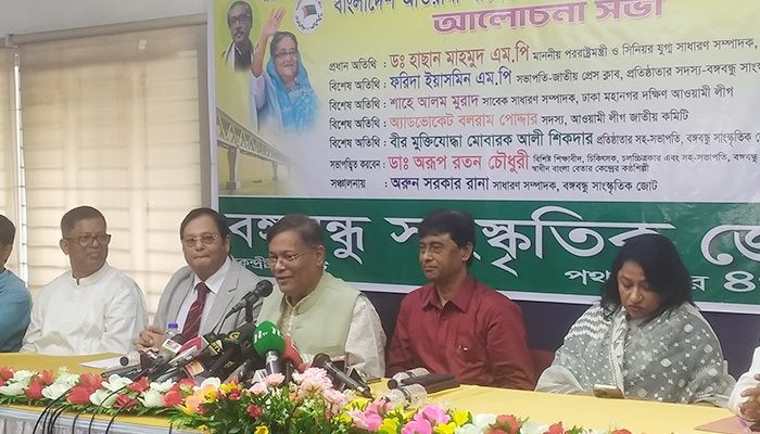 সোমবার (২৪ জুন) আওয়ামী লীগের ৭৫তম প্রতিষ্ঠাবার্ষিকী উপলক্ষে আয়োজিত এক আলোচনা সভায় প্রধান অতিথির বক্তব্যে তিনি এসব কথা বলেন। জাতীয় প্রেস ক্লাবের মাওলানা আকরম খাঁ হলে এ আলোচনা সভার আয়োজন করে বঙ্গবন্ধু সাংস্কৃতিক জোট।